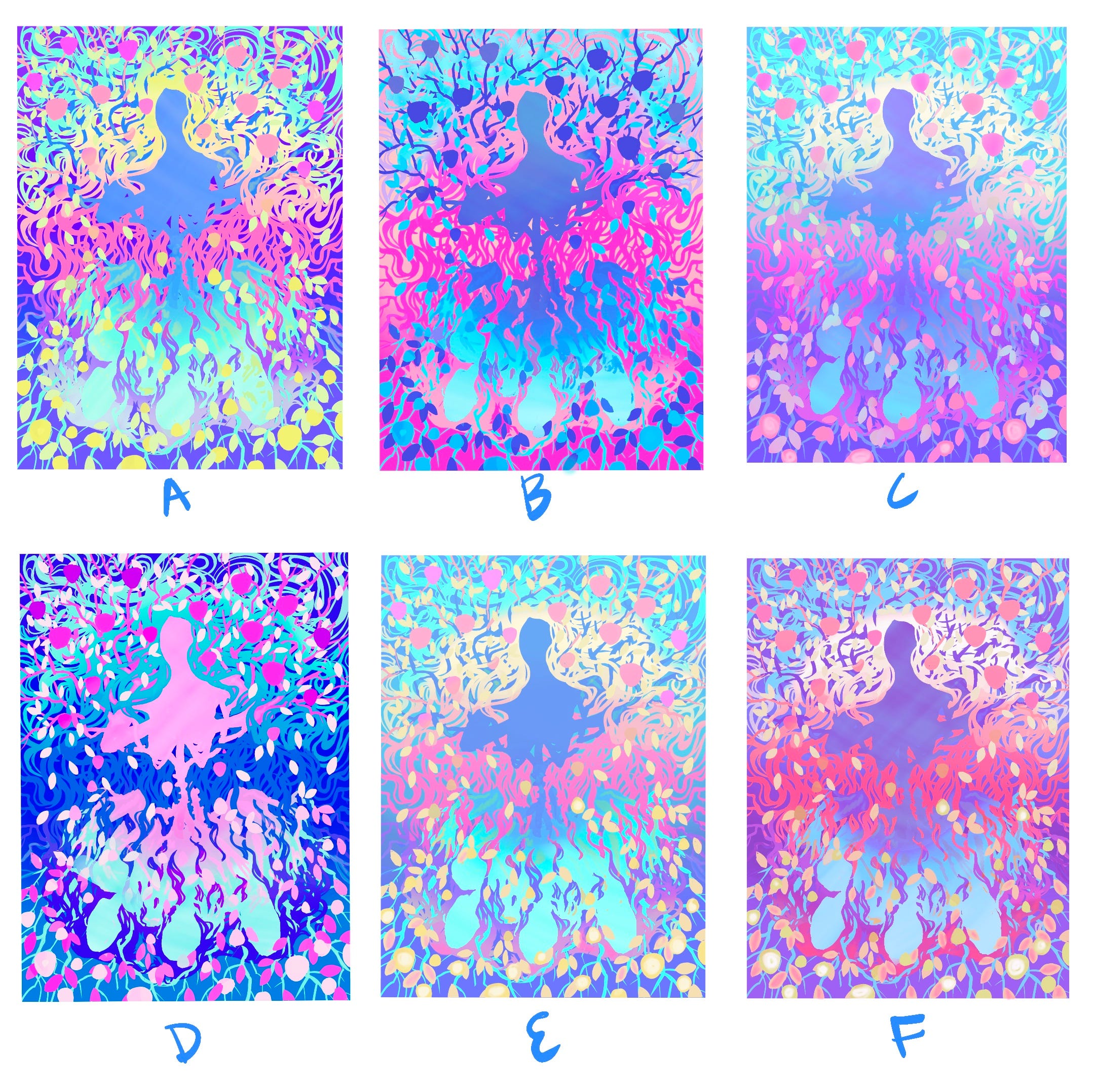 I struggled for awhile with the color palette, tried a few different ideas and asked for feedback. I even did a watercolor study of the face of the human figure with a different palette than I ultimately chose. (The study is available on Every Day Original).